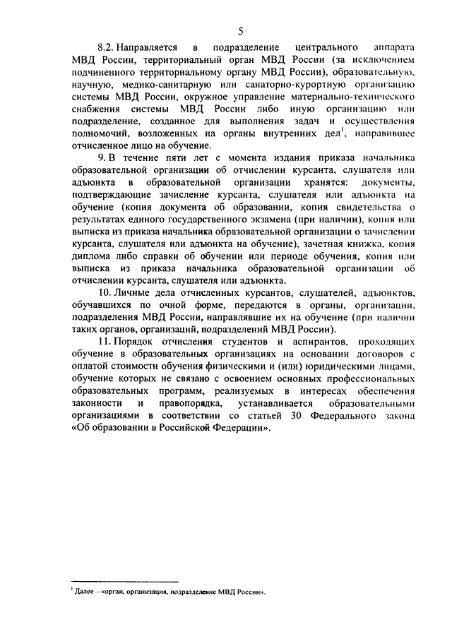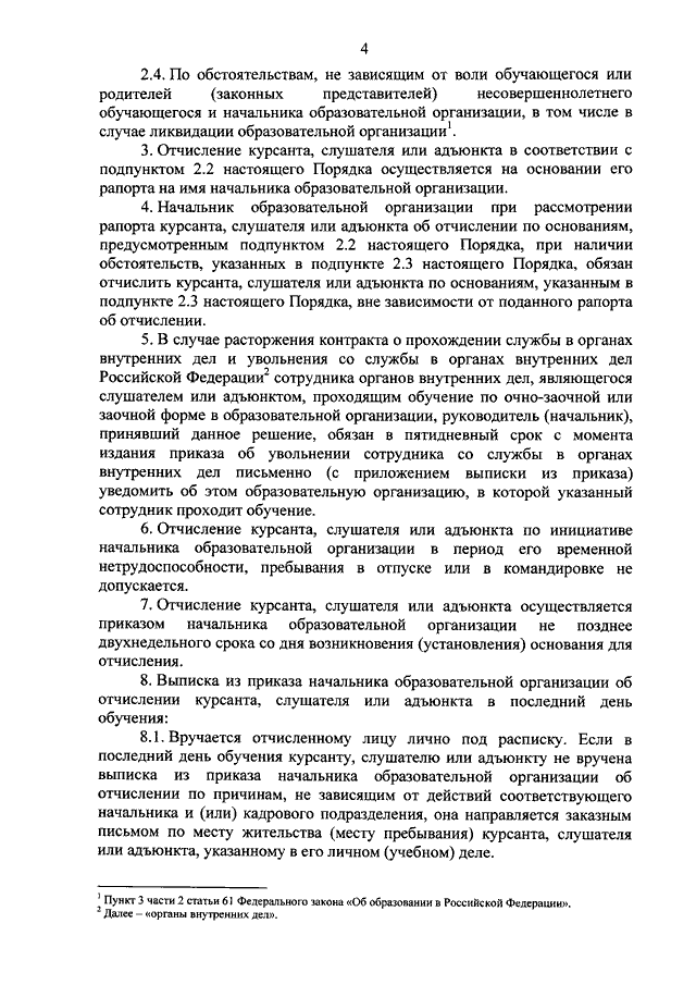 "О ПОРЯДКЕ ОТЧИСЛЕНИЯ ИЗ ФЕДЕРАЛЬНЫХ ГОСУДАРСТВЕННЫХ ОРГАНИЗАЦИЙ,