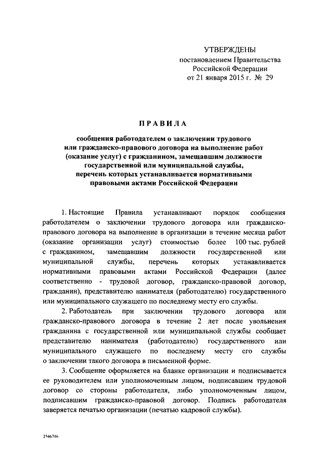 "ОБ УТВЕРЖДЕНИИ ПРАВИЛ СООБЩЕНИЯ РАБОТОДАТЕЛЕМ О ЗАКЛЮЧЕНИИ ТРУДОВОГО ИЛИ ГРАЖДАНСКО - ПРАВОВОГО ДОГОВОРА НА ВЫПОЛНЕНИЕ РАБОТ (ОКАЗАНИЕ УСЛУГ) С ГРАЖДАНИНОМ, ЗАМЕЩАВШИМ ДОЛЖНОСТИ ГОСУДАРСТВЕННОЙ ИЛИ МУНИЦИПАЛЬНОЙ СЛУЖБЫ, ПЕРЕЧЕНЬ КОТОРЫХ УСТАНАВЛИВАЕТСЯ НОРМАТИВНЫМИ ПРАВОВЫМИ АКТАМИ РОССИЙСКОЙ ФЕДЕРАЦИИ"