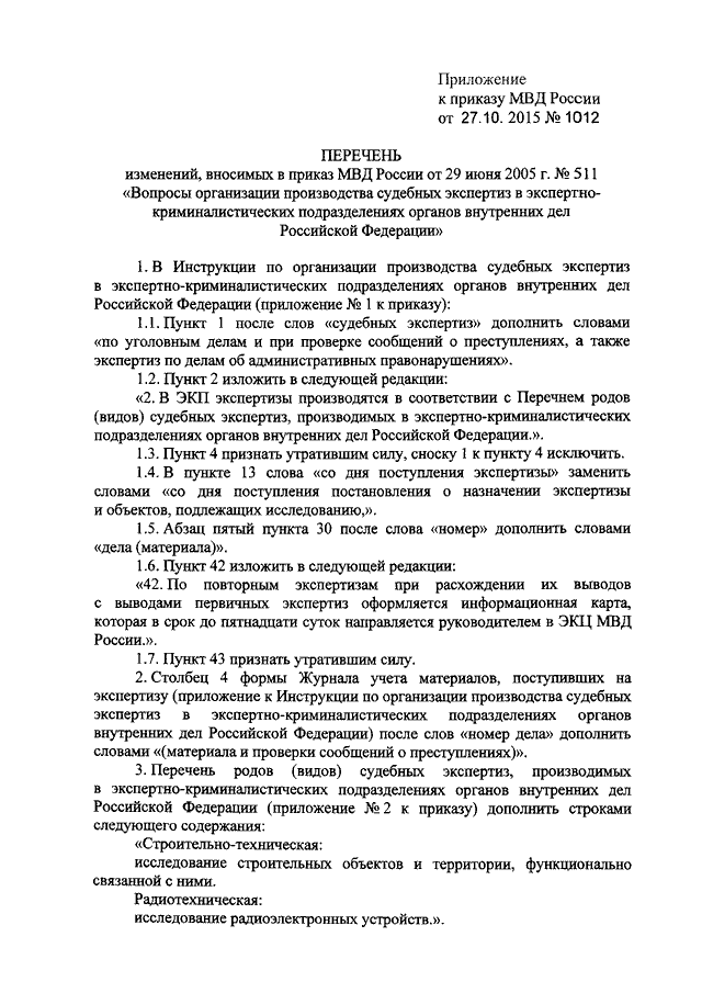 ПРИКАЗ МВД РФ от 27.10.2015 N 1012