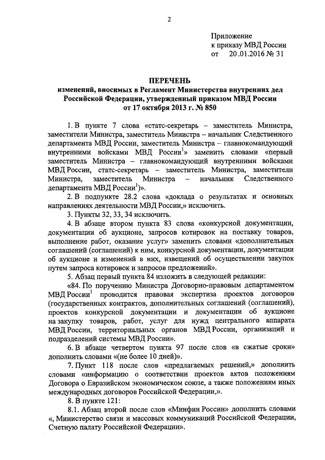 ПРИКАЗ МВД РФ от 20.01.2016 N 31