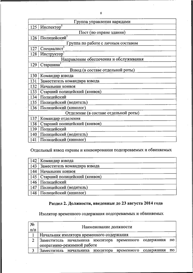 "ОБ УТВЕРЖДЕНИИ ПЕРЕЧНЯ ДОЛЖНОСТЕЙ В ИЗОЛЯТОРАХ ВРЕМЕННОГО