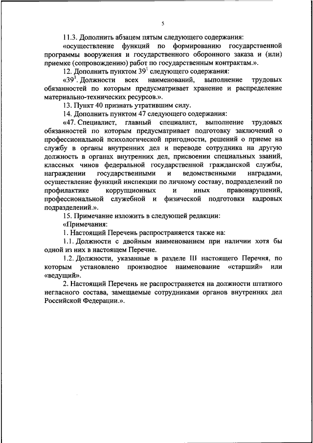 "О ВНЕСЕНИИ ИЗМЕНЕНИЙ В ПЕРЕЧЕНЬ ДОЛЖНОСТЕЙ ФЕДЕРАЛЬНОЙ