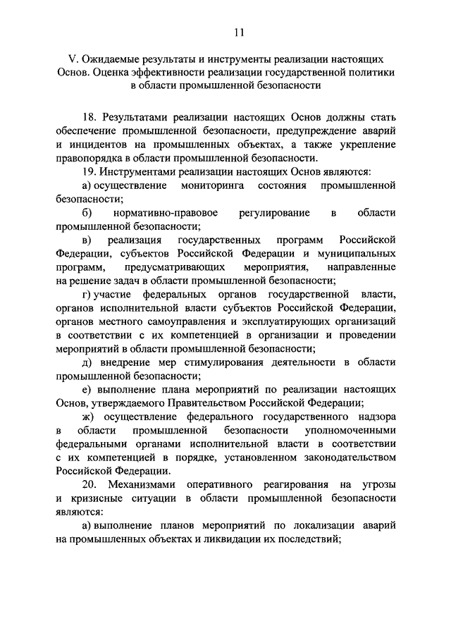 "ОБ ОСНОВАХ ГОСУДАРСТВЕННОЙ ПОЛИТИКИ РОССИЙСКОЙ ФЕДЕРАЦИИ В ОБЛАСТИ ПРОМЫШЛЕННОЙ БЕЗОПАСНОСТИ НА ПЕРИОД ДО 2025 ГОДА И ДАЛЬНЕЙШУЮ ПЕРСПЕКТИВУ"