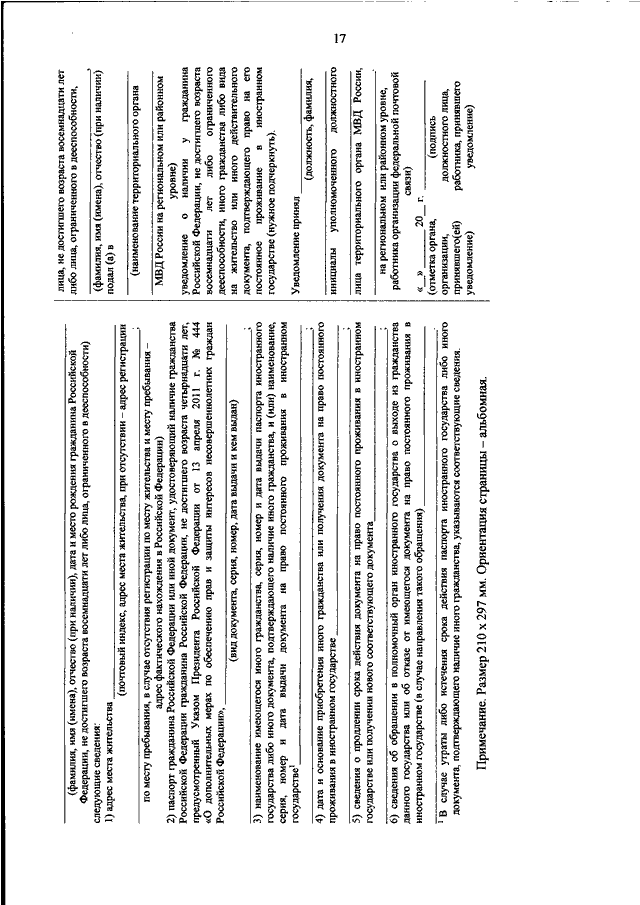 "ОБ УТВЕРЖДЕНИИ ПОРЯДКА ПОДАЧИ И ФОРМ УВЕДОМЛЕНИЙ О НАЛИЧИИ У ГРАЖДАНИНА РОССИЙСКОЙ ФЕДЕРАЦИИ ИНОГО ГРАЖДАНСТВА ЛИБО ВИДА НА ЖИТЕЛЬСТВО ИЛИ ИНОГО ДЕЙСТВИТЕЛЬНОГО ДОКУМЕНТА, ПОДТВЕРЖДАЮЩЕГО ПРАВО НА ЕГО ПОСТОЯННОЕ ПРОЖИВАНИЕ В ИНОСТРАННОМ ГОСУДАРСТВЕ"