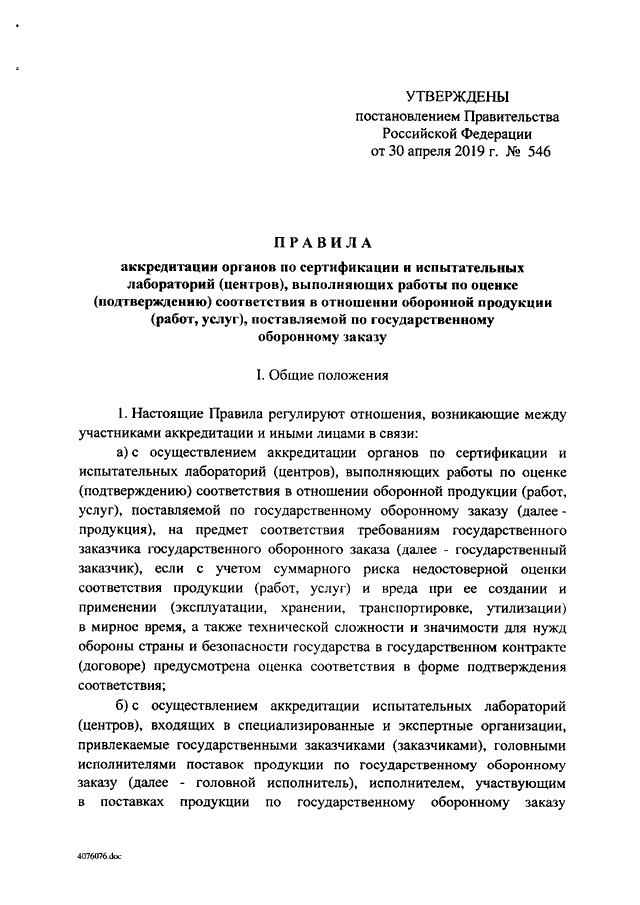 ПОСТАНОВЛЕНИЕ Правительства РФ от 30.04.2019 N 546