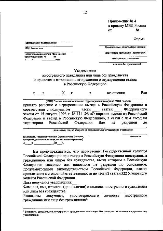 "ОБ УТВЕРЖДЕНИИ ПОРЯДКА РАССМОТРЕНИЯ МАТЕРИАЛОВ, СОДЕРЖАЩИХ ОБСТОЯТЕЛЬСТВА, ЯВЛЯЮЩИЕСЯ ОСНОВАНИЕМ ДЛЯ ПРИНЯТИЯ (ОТМЕНЫ) РЕШЕНИЯ О НЕРАЗРЕШЕНИИ ВЪЕЗДА В РОССИЙСКУЮ ФЕДЕРАЦИЮ В ОТНОШЕНИИ ИНОСТРАННОГО ГРАЖДАНИНА ИЛИ ЛИЦА БЕЗ ГРАЖДАНСТВА, А ТАКЖЕ ФОРМ РЕШЕНИЯ О НЕРАЗРЕШЕНИИ ВЪЕЗДА В РОССИЙСКУЮ ФЕДЕРАЦИЮ В ОТНОШЕНИИ ИНОСТРАННОГО ГРАЖДАНИНА ИЛИ ЛИЦА БЕЗ ГРАЖДАНСТВА, РЕШЕНИЯ ОБ ОТМЕНЕ РЕШЕНИЯ О НЕРАЗРЕШЕНИИ ВЪЕЗДА В РОССИЙСКУЮ ФЕДЕРАЦИЮ В ОТНОШЕНИИ ИНОСТРАННОГО ГРАЖДАНИНА ИЛИ ЛИЦА БЕЗ ГРАЖДАНСТВА, УВЕДОМЛЕНИЯ ИНОСТРАННОГО ГРАЖДАНИНА ИЛИ ЛИЦА БЕЗ ГРАЖДАНСТВА О ПРИНЯТОМ В ОТНОШЕНИИ НЕГО РЕШЕНИИ О НЕРАЗРЕШЕНИИ ВЪЕЗДА В РОССИЙСКУЮ ФЕДЕРАЦИЮ"