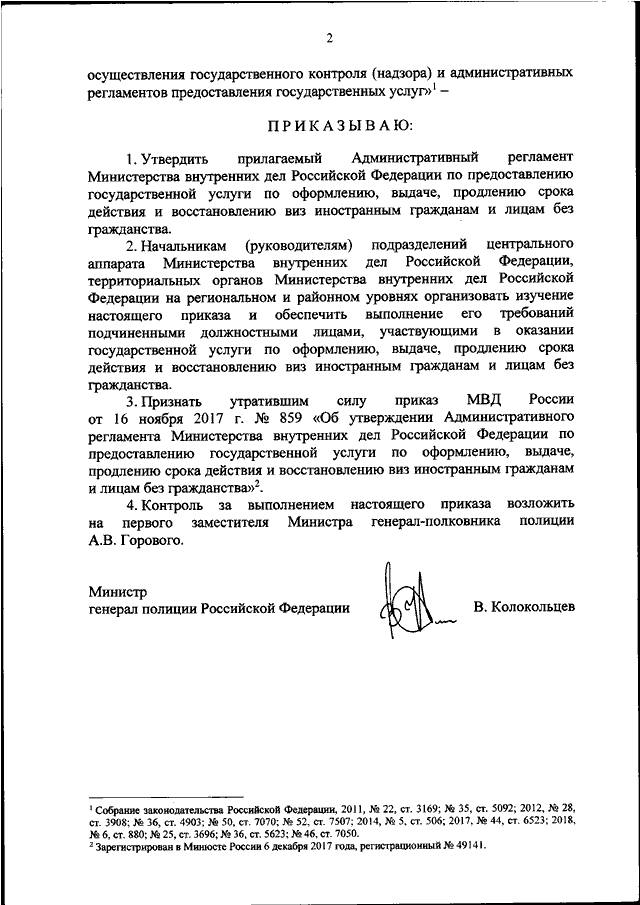 "ОБ УТВЕРЖДЕНИИ АДМИНИСТРАТИВНОГО РЕГЛАМЕНТА МИНИСТЕРСТВА ВНУТРЕННИХ ДЕЛ РОССИЙСКОЙ ФЕДЕРАЦИИ ПО ПРЕДОСТАВЛЕНИЮ ГОСУДАРСТВЕННОЙ УСЛУГИ ПО ОФОРМЛЕНИЮ, ВЫДАЧЕ, ПРОДЛЕНИЮ СРОКА ДЕЙСТВИЯ И ВОССТАНОВЛЕНИЮ ВИЗ ИНОСТРАННЫМ ГРАЖДАНАМ И ЛИЦАМ БЕЗ ГРАЖДАНСТВА"