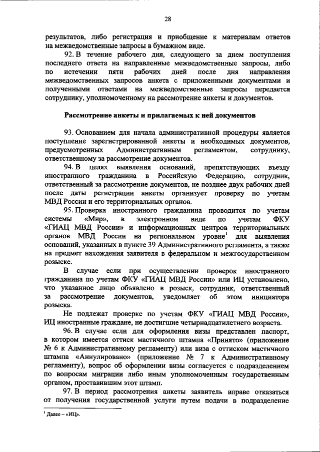 "ОБ УТВЕРЖДЕНИИ АДМИНИСТРАТИВНОГО РЕГЛАМЕНТА МИНИСТЕРСТВА ВНУТРЕННИХ ДЕЛ РОССИЙСКОЙ ФЕДЕРАЦИИ ПО ПРЕДОСТАВЛЕНИЮ ГОСУДАРСТВЕННОЙ УСЛУГИ ПО ОФОРМЛЕНИЮ, ВЫДАЧЕ, ПРОДЛЕНИЮ СРОКА ДЕЙСТВИЯ И ВОССТАНОВЛЕНИЮ ВИЗ ИНОСТРАННЫМ ГРАЖДАНАМ И ЛИЦАМ БЕЗ ГРАЖДАНСТВА"