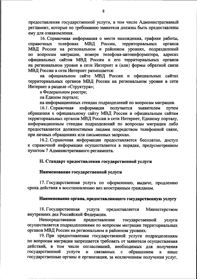 "ОБ УТВЕРЖДЕНИИ АДМИНИСТРАТИВНОГО РЕГЛАМЕНТА МИНИСТЕРСТВА ВНУТРЕННИХ ДЕЛ РОССИЙСКОЙ ФЕДЕРАЦИИ ПО ПРЕДОСТАВЛЕНИЮ ГОСУДАРСТВЕННОЙ УСЛУГИ ПО ОФОРМЛЕНИЮ, ВЫДАЧЕ, ПРОДЛЕНИЮ СРОКА ДЕЙСТВИЯ И ВОССТАНОВЛЕНИЮ ВИЗ ИНОСТРАННЫМ ГРАЖДАНАМ И ЛИЦАМ БЕЗ ГРАЖДАНСТВА"