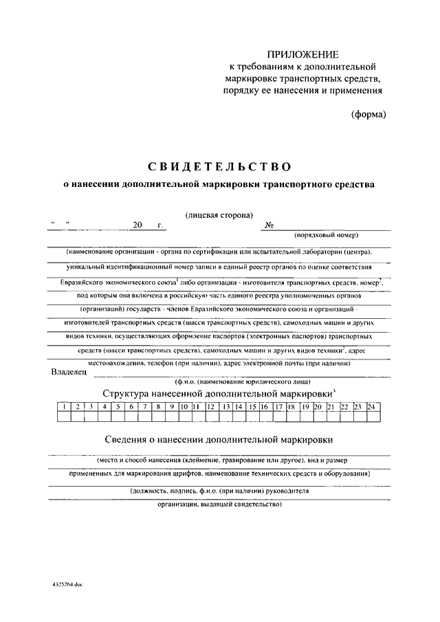 "ОБ УТВЕРЖДЕНИИ ТРЕБОВАНИЙ К ДОПОЛНИТЕЛЬНОЙ МАРКИРОВКЕ ТРАНСПОРТНОГО СРЕДСТВА, ПОРЯДКА ЕЕ НАНЕСЕНИЯ И ПРИМЕНЕНИЯ"