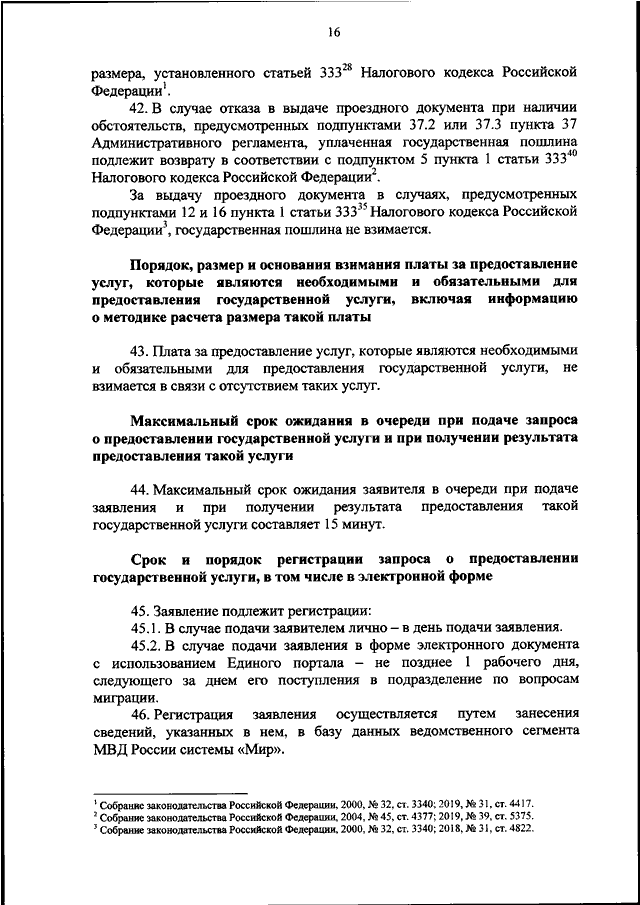"ОБ УТВЕРЖДЕНИИ АДМИНИСТРАТИВНОГО РЕГЛАМЕНТА МИНИСТЕРСТВА ВНУТРЕННИХ ДЕЛ РОССИЙСКОЙ ФЕДЕРАЦИИ ПО ПРЕДОСТАВЛЕНИЮ ГОСУДАРСТВЕННОЙ УСЛУГИ ПО ОФОРМЛЕНИЮ И ВЫДАЧЕ БЕЖЕНЦУ ПРОЕЗДНОГО ДОКУМЕНТА, СОДЕРЖАЩЕГО ЭЛЕКТРОННЫЙ НОСИТЕЛЬ ИНФОРМАЦИИ"