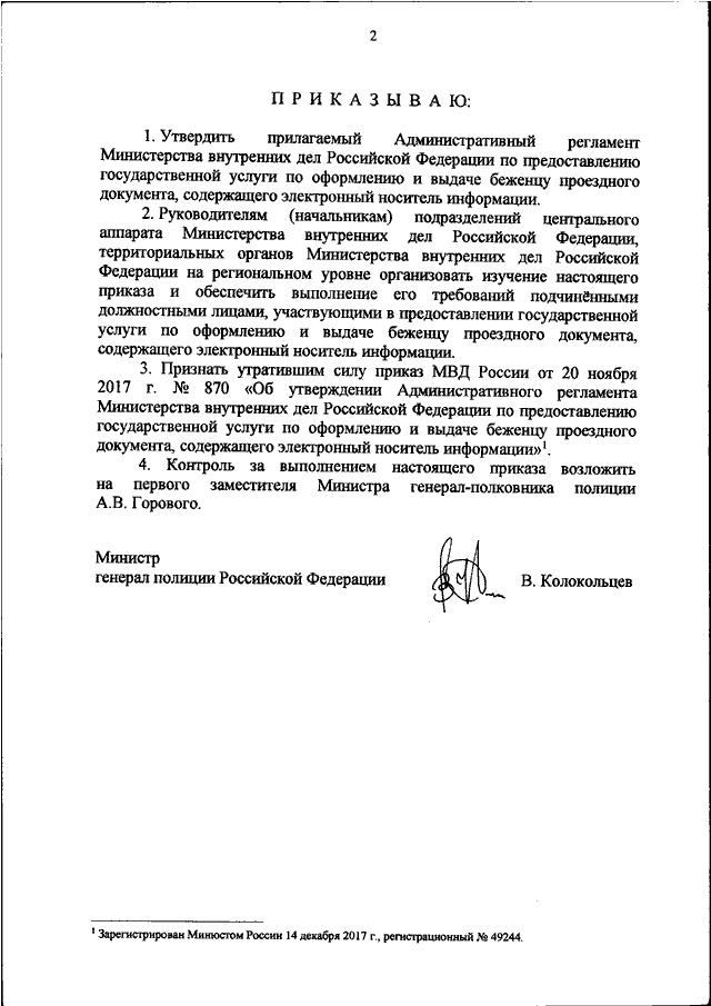 "ОБ УТВЕРЖДЕНИИ АДМИНИСТРАТИВНОГО РЕГЛАМЕНТА МИНИСТЕРСТВА ВНУТРЕННИХ ДЕЛ РОССИЙСКОЙ ФЕДЕРАЦИИ ПО ПРЕДОСТАВЛЕНИЮ ГОСУДАРСТВЕННОЙ УСЛУГИ ПО ОФОРМЛЕНИЮ И ВЫДАЧЕ БЕЖЕНЦУ ПРОЕЗДНОГО ДОКУМЕНТА, СОДЕРЖАЩЕГО ЭЛЕКТРОННЫЙ НОСИТЕЛЬ ИНФОРМАЦИИ"
