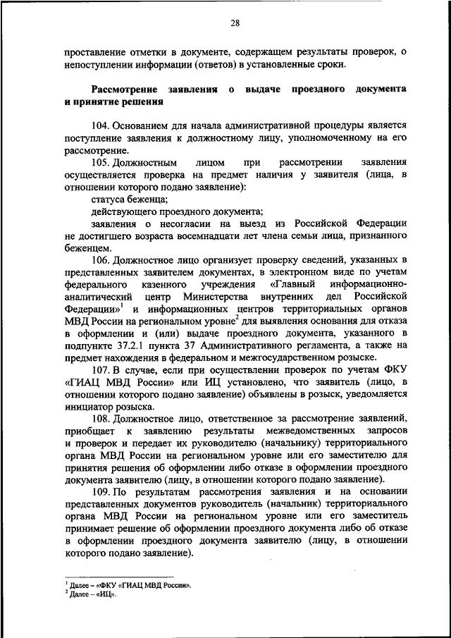 "ОБ УТВЕРЖДЕНИИ АДМИНИСТРАТИВНОГО РЕГЛАМЕНТА МИНИСТЕРСТВА ВНУТРЕННИХ ДЕЛ РОССИЙСКОЙ ФЕДЕРАЦИИ ПО ПРЕДОСТАВЛЕНИЮ ГОСУДАРСТВЕННОЙ УСЛУГИ ПО ОФОРМЛЕНИЮ И ВЫДАЧЕ БЕЖЕНЦУ ПРОЕЗДНОГО ДОКУМЕНТА, СОДЕРЖАЩЕГО ЭЛЕКТРОННЫЙ НОСИТЕЛЬ ИНФОРМАЦИИ"