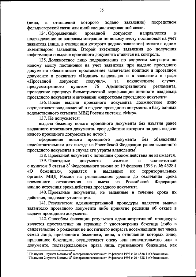 "ОБ УТВЕРЖДЕНИИ АДМИНИСТРАТИВНОГО РЕГЛАМЕНТА МИНИСТЕРСТВА ВНУТРЕННИХ ДЕЛ РОССИЙСКОЙ ФЕДЕРАЦИИ ПО ПРЕДОСТАВЛЕНИЮ ГОСУДАРСТВЕННОЙ УСЛУГИ ПО ОФОРМЛЕНИЮ И ВЫДАЧЕ БЕЖЕНЦУ ПРОЕЗДНОГО ДОКУМЕНТА, СОДЕРЖАЩЕГО ЭЛЕКТРОННЫЙ НОСИТЕЛЬ ИНФОРМАЦИИ"