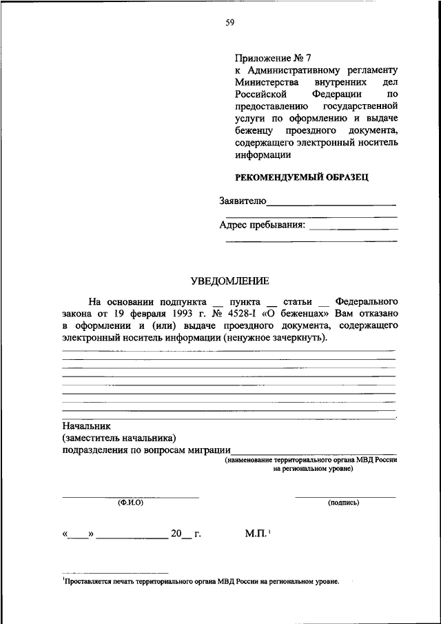 "ОБ УТВЕРЖДЕНИИ АДМИНИСТРАТИВНОГО РЕГЛАМЕНТА МИНИСТЕРСТВА ВНУТРЕННИХ ДЕЛ РОССИЙСКОЙ ФЕДЕРАЦИИ ПО ПРЕДОСТАВЛЕНИЮ ГОСУДАРСТВЕННОЙ УСЛУГИ ПО ОФОРМЛЕНИЮ И ВЫДАЧЕ БЕЖЕНЦУ ПРОЕЗДНОГО ДОКУМЕНТА, СОДЕРЖАЩЕГО ЭЛЕКТРОННЫЙ НОСИТЕЛЬ ИНФОРМАЦИИ"