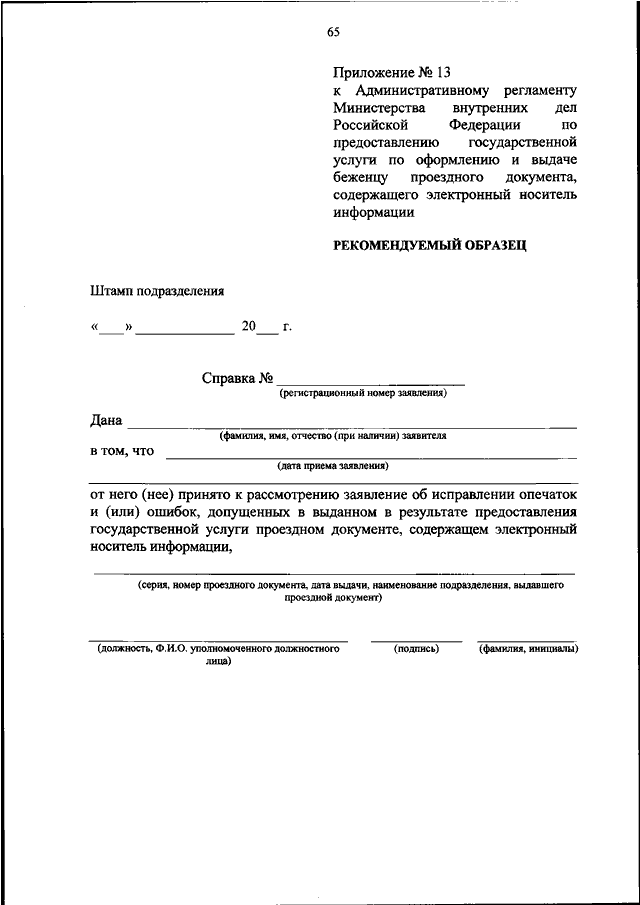 "ОБ УТВЕРЖДЕНИИ АДМИНИСТРАТИВНОГО РЕГЛАМЕНТА МИНИСТЕРСТВА ВНУТРЕННИХ ДЕЛ РОССИЙСКОЙ ФЕДЕРАЦИИ ПО ПРЕДОСТАВЛЕНИЮ ГОСУДАРСТВЕННОЙ УСЛУГИ ПО ОФОРМЛЕНИЮ И ВЫДАЧЕ БЕЖЕНЦУ ПРОЕЗДНОГО ДОКУМЕНТА, СОДЕРЖАЩЕГО ЭЛЕКТРОННЫЙ НОСИТЕЛЬ ИНФОРМАЦИИ"
