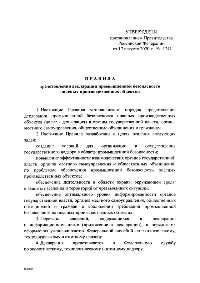 "ОБ УТВЕРЖДЕНИИ ПРАВИЛ ПРЕДСТАВЛЕНИЯ ДЕКЛАРАЦИИ ПРОМЫШЛЕННОЙ БЕЗОПАСНОСТИ ОПАСНЫХ ПРОИЗВОДСТВЕННЫХ ОБЪЕКТОВ"