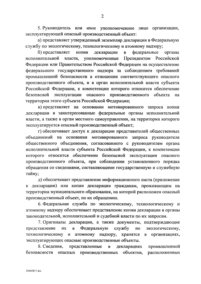 "ОБ УТВЕРЖДЕНИИ ПРАВИЛ ПРЕДСТАВЛЕНИЯ ДЕКЛАРАЦИИ ПРОМЫШЛЕННОЙ БЕЗОПАСНОСТИ ОПАСНЫХ ПРОИЗВОДСТВЕННЫХ ОБЪЕКТОВ"