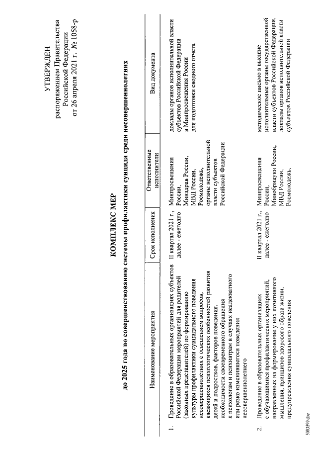 РАСПОРЯЖЕНИЕ Правительства РФ от 26.04.2021 N 1058-р