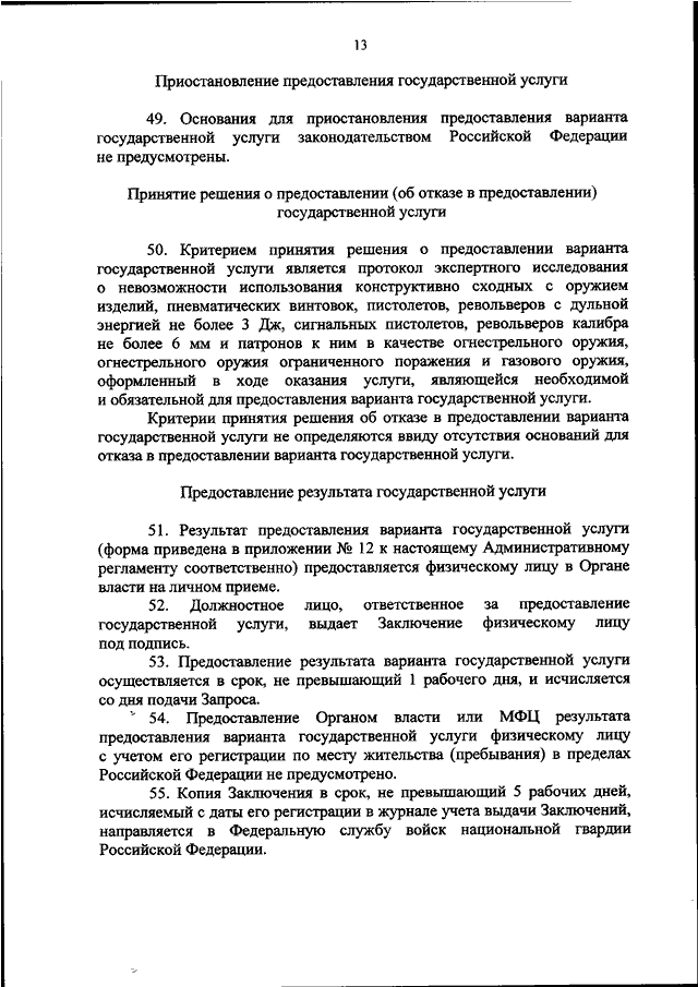 "ОБ УТВЕРЖДЕНИИ АДМИНИСТРАТИВНОГО РЕГЛАМЕНТА МИНИСТЕРСТВА ВНУТРЕННИХ ДЕЛ РОССИЙСКОЙ ФЕДЕРАЦИИ ПО ПРЕДОСТАВЛЕНИЮ ГОСУДАРСТВЕННОЙ УСЛУГИ ПО ВЫДАЧЕ ЗАКЛЮЧЕНИЙ МИНИСТЕРСТВА ВНУТРЕННИХ ДЕЛ РОССИЙСКОЙ ФЕДЕРАЦИИ О НЕВОЗМОЖНОСТИ ИСПОЛЬЗОВАНИЯ КОНСТРУКТИВНО СХОДНЫХ С ОРУЖИЕМ ИЗДЕЛИЙ, ПНЕВМАТИЧЕСКИХ ВИНТОВОК, ПИСТОЛЕТОВ, РЕВОЛЬВЕРОВ С ДУЛЬНОЙ ЭНЕРГИЕЙ НЕ БОЛЕЕ 3 ДЖ, СИГНАЛЬНЫХ ПИСТОЛЕТОВ, РЕВОЛЬВЕРОВ КАЛИБРА НЕ БОЛЕЕ 6 ММ И ПАТРОНОВ К НИМ В КАЧЕСТВЕ ОГНЕСТРЕЛЬНОГО ОРУЖИЯ, ОГНЕСТРЕЛЬНОГО ОРУЖИЯ ОГРАНИЧЕННОГО ПОРАЖЕНИЯ И ГАЗОВОГО ОРУЖИЯ"