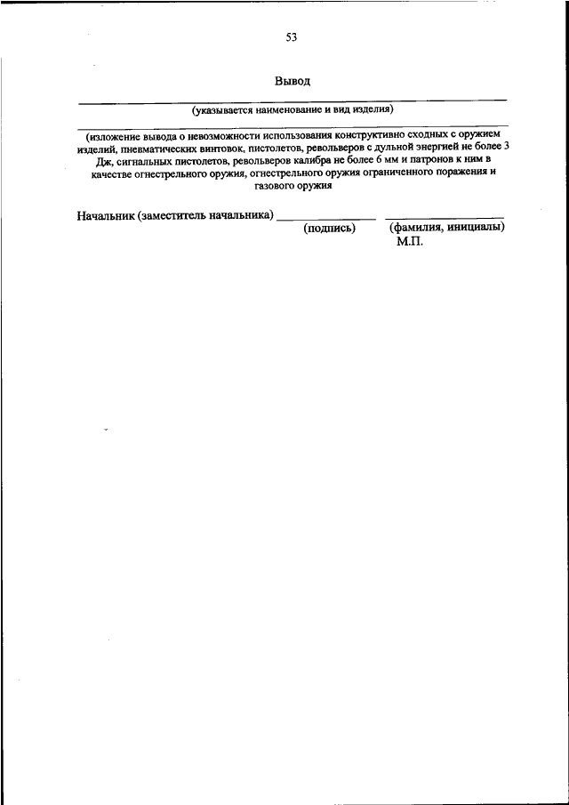 "ОБ УТВЕРЖДЕНИИ АДМИНИСТРАТИВНОГО РЕГЛАМЕНТА МИНИСТЕРСТВА ВНУТРЕННИХ ДЕЛ РОССИЙСКОЙ ФЕДЕРАЦИИ ПО ПРЕДОСТАВЛЕНИЮ ГОСУДАРСТВЕННОЙ УСЛУГИ ПО ВЫДАЧЕ ЗАКЛЮЧЕНИЙ МИНИСТЕРСТВА ВНУТРЕННИХ ДЕЛ РОССИЙСКОЙ ФЕДЕРАЦИИ О НЕВОЗМОЖНОСТИ ИСПОЛЬЗОВАНИЯ КОНСТРУКТИВНО СХОДНЫХ С ОРУЖИЕМ ИЗДЕЛИЙ, ПНЕВМАТИЧЕСКИХ ВИНТОВОК, ПИСТОЛЕТОВ, РЕВОЛЬВЕРОВ С ДУЛЬНОЙ ЭНЕРГИЕЙ НЕ БОЛЕЕ 3 ДЖ, СИГНАЛЬНЫХ ПИСТОЛЕТОВ, РЕВОЛЬВЕРОВ КАЛИБРА НЕ БОЛЕЕ 6 ММ И ПАТРОНОВ К НИМ В КАЧЕСТВЕ ОГНЕСТРЕЛЬНОГО ОРУЖИЯ, ОГНЕСТРЕЛЬНОГО ОРУЖИЯ ОГРАНИЧЕННОГО ПОРАЖЕНИЯ И ГАЗОВОГО ОРУЖИЯ"