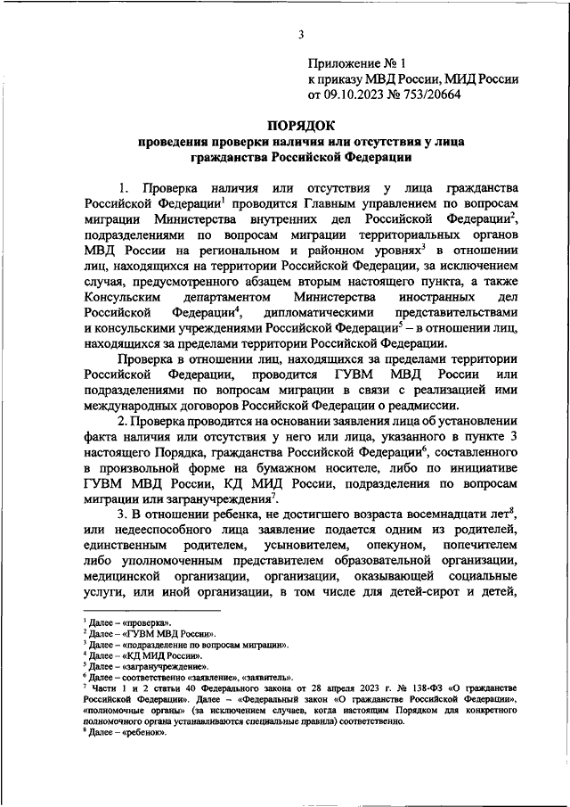 ПРИКАЗ МВД РФ N 753, МИД РФ N 20664 09.10.2023