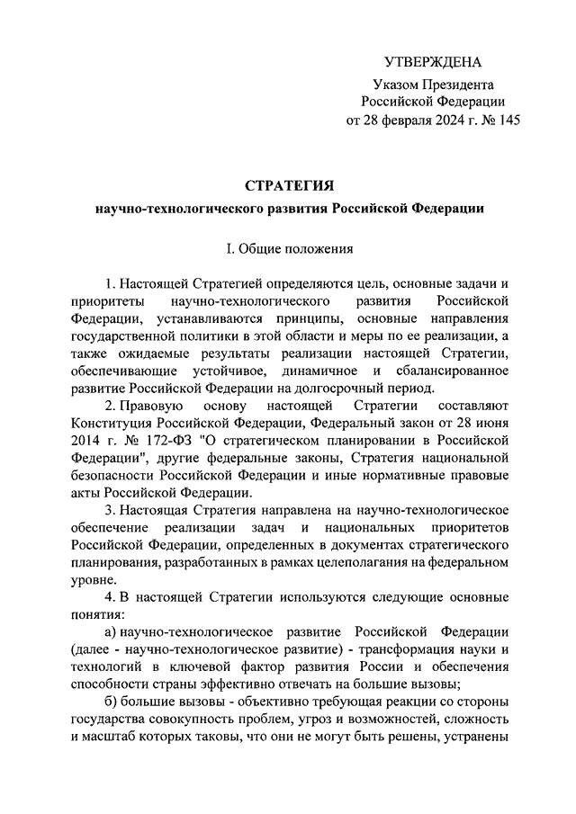 "О СТРАТЕГИИ НАУЧНО - ТЕХНОЛОГИЧЕСКОГО РАЗВИТИЯ РОССИЙСКОЙ ФЕДЕРАЦИИ"