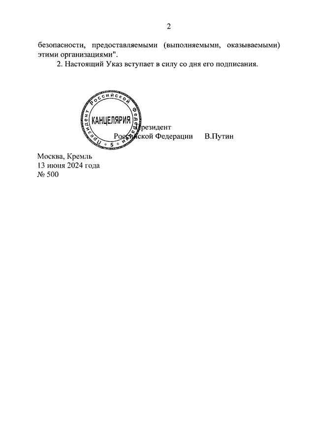 УКАЗ Президента РФ от 13.06.2024 N 500