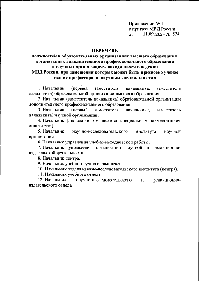 ПРИКАЗ МВД РФ от 11.09.2024 N 534