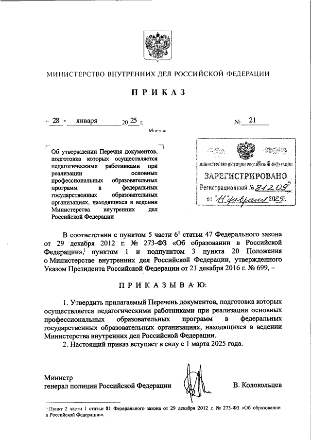ПРИКАЗ МВД РФ от 28.01.2025 N 21