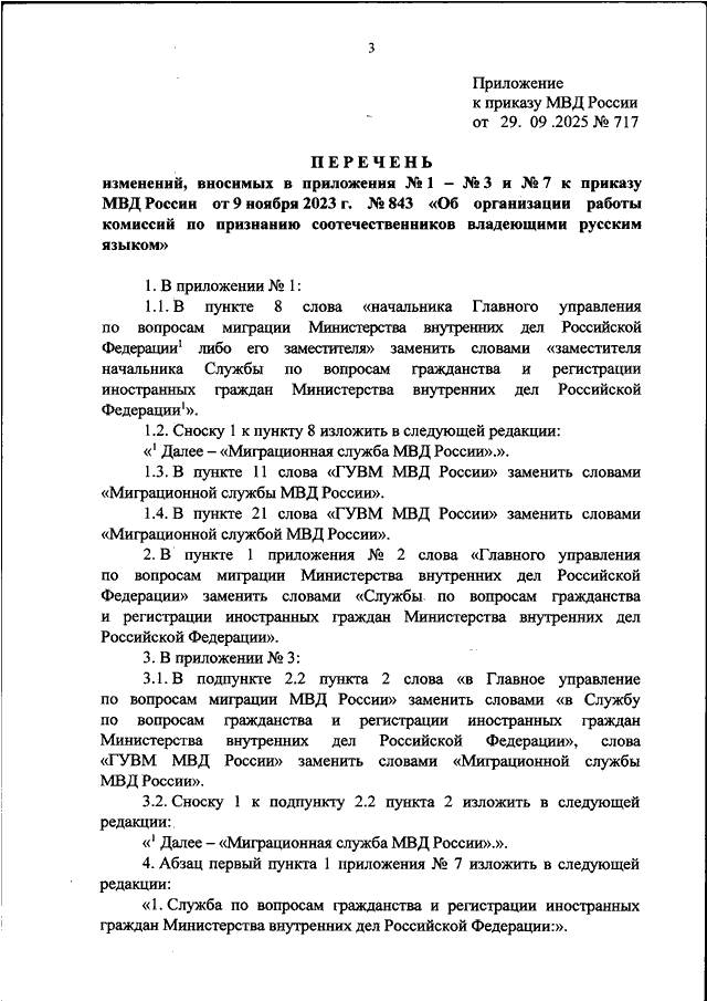 "О ВНЕСЕНИИ ИЗМЕНЕНИЙ В ПРИЛОЖЕНИЯ N 1 - N 3 И N 7К ПРИКАЗУ МВД РОССИИ ОТ 9 НОЯБРЯ 2023 Г. N 843"