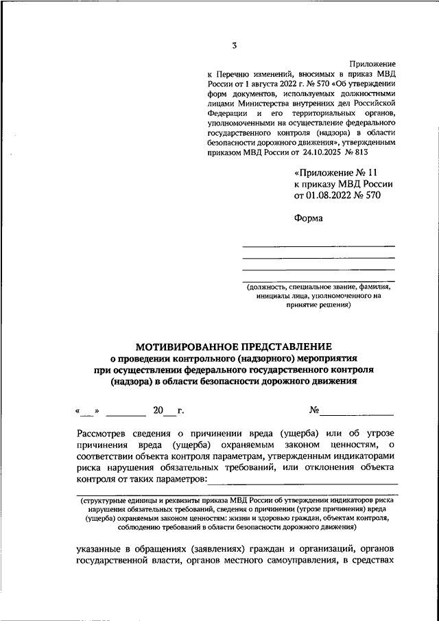 "О ВНЕСЕНИИ ИЗМЕНЕНИЙ В ПРИКАЗ МВД РОССИИ ОТ 1 АВГУСТА 2022 Г. N 570"