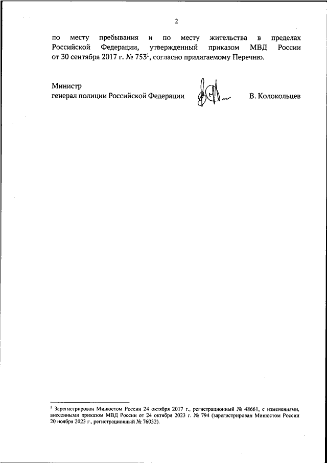 "О ВНЕСЕНИИ ИЗМЕНЕНИЙ В ПЕРЕЧЕНЬ ДОЛЖНОСТНЫХ ЛИЦ МИНИСТЕРСТВА ВНУТРЕННИХ ДЕЛ РОССИЙСКОЙ ФЕДЕРАЦИИ, ОТВЕТСТВЕННЫХ ЗА СОБЛЮДЕНИЕ ПОРЯДКА ВЕДЕНИЯ БАЗОВОГО ГОСУДАРСТВЕННОГО ИНФОРМАЦИОННОГО РЕСУРСА РЕГИСТРАЦИОННОГО УЧЕТА ГРАЖДАН РОССИЙСКОЙ ФЕДЕРАЦИИ ПО МЕСТУ ПРЕБЫВАНИЯ И ПО МЕСТУ ЖИТЕЛЬСТВА В ПРЕДЕЛАХ РОССИЙСКОЙ ФЕДЕРАЦИИ, УТВЕРЖДЕННЫЙ ПРИКАЗОМ МВД РОССИИ ОТ 30 СЕНТЯБРЯ 2017 Г. N 753"