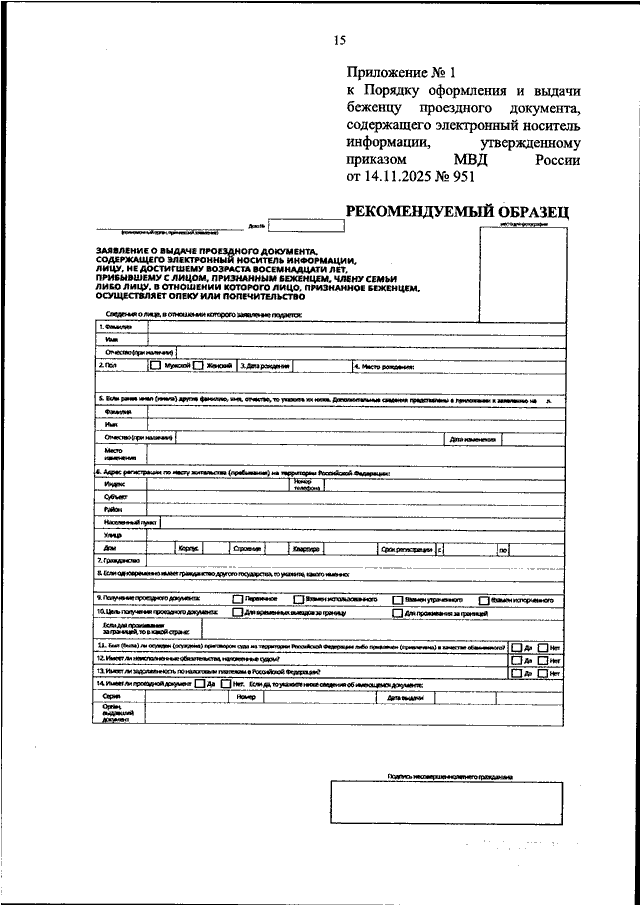 "ОБ ОПРЕДЕЛЕНИИ ПОРЯДКА ОФОРМЛЕНИЯ И ВЫДАЧИ БЕЖЕНЦУ ПРОЕЗДНОГО ДОКУМЕНТА, СОДЕРЖАЩЕГО ЭЛЕКТРОННЫЙ НОСИТЕЛЬ ИНФОРМАЦИИ, И ФОРМЫ ЗАЯВЛЕНИЯ О ВЫДАЧЕ БЕЖЕНЦУ ТАКОГО ПРОЕЗДНОГО ДОКУМЕНТА"