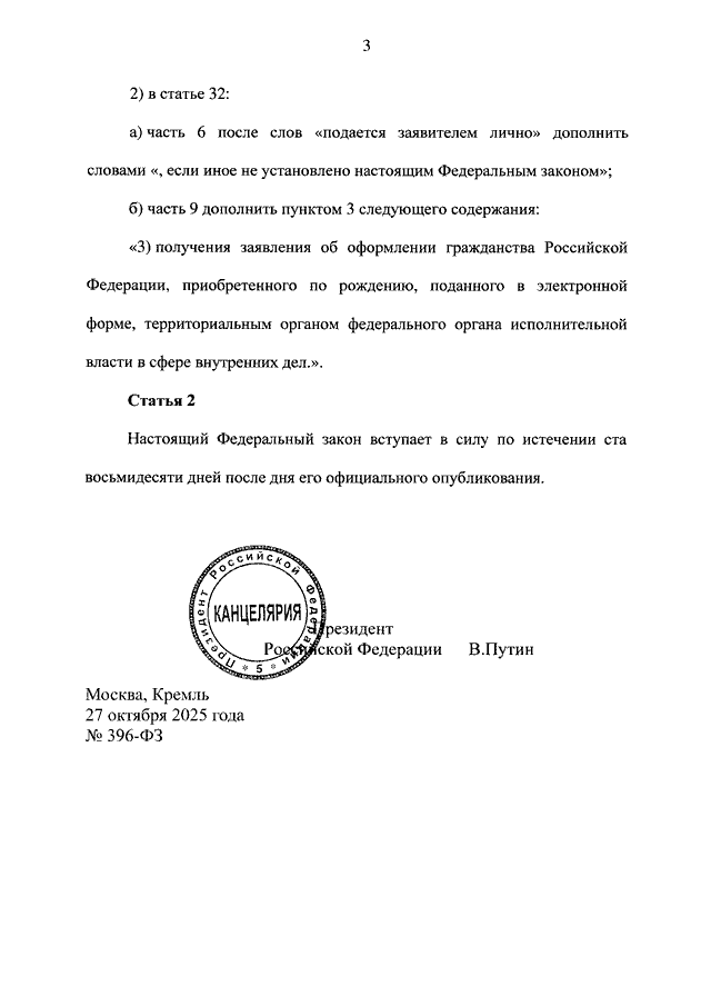 ФЕДЕРАЛЬНЫЙ ЗАКОН от 27.10.2025 N 396-ФЗ