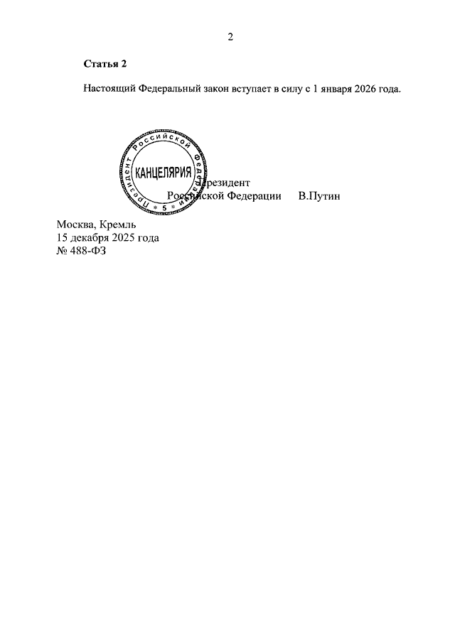 ФЕДЕРАЛЬНЫЙ ЗАКОН от 15.12.2025 N 488-ФЗ