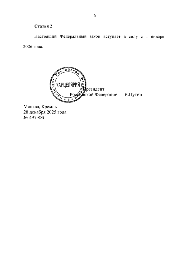ФЕДЕРАЛЬНЫЙ ЗАКОН от 28.12.2025 N 497-ФЗ