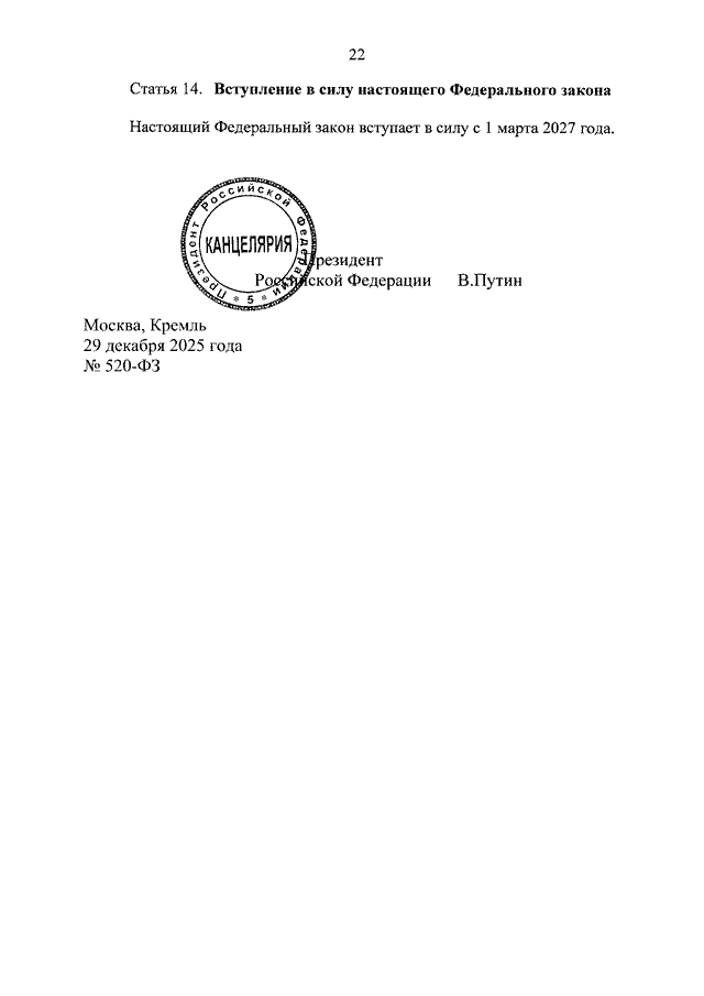ФЕДЕРАЛЬНЫЙ ЗАКОН от 29.12.20252 N 520-ФЗ