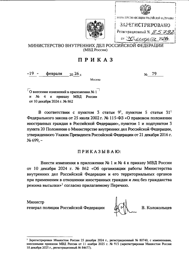 ПРИКАЗ МВД РФ от 19.02.2026 N 79