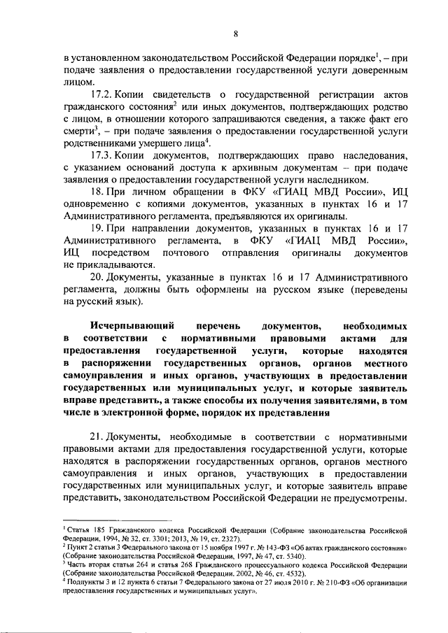 "ОБ УТВЕРЖДЕНИИ АДМИНИСТРАТИВНОГО РЕГЛАМЕНТА МИНИСТЕРСТВА ВНУТРЕННИХ ДЕЛ РОССИЙСКОЙ ФЕДЕРАЦИИ ПО ПРЕДОСТАВЛЕНИЮ ГОСУДАРСТВЕННОЙ УСЛУГИ ПО ВЫДАЧЕ АРХИВНЫХ СПРАВОК И КОПИЙ АРХИВНЫХ ДОКУМЕНТОВ, СВЯЗАННЫХ С СОЦИАЛЬНОЙ ЗАЩИТОЙ ГРАЖДАН, ПРЕДУСМАТРИВАЮЩЕЙ ИХ ПЕНСИОННОЕ ОБЕСПЕЧЕНИЕ, А ТАКЖЕ ПОЛУЧЕНИЕ ЛЬГОТ И КОМПЕНСАЦИЙ В СООТВЕТСТВИИ С ЗАКОНОДАТЕЛЬСТВОМ РОССИЙСКОЙ ФЕДЕРАЦИИ"