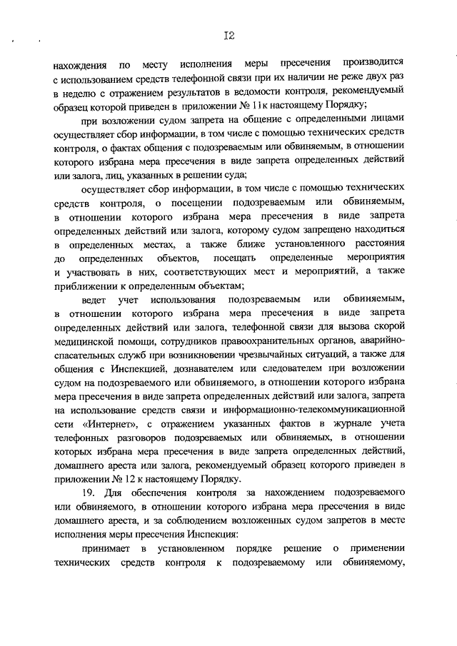 "ОБ УТВЕРЖДЕНИИ ПОРЯДКА ОСУЩЕСТВЛЕНИЯ КОНТРОЛЯ ЗА НАХОЖДЕНИЕМ ПОДОЗРЕВАЕМЫХ ИЛИ ОБВИНЯЕМЫХ В МЕСТЕ ИСПОЛНЕНИЯ МЕРЫ ПРЕСЕЧЕНИЯ В ВИДЕ ДОМАШНЕГО АРЕСТА И ЗА СОБЛЮДЕНИЕМ ВОЗЛОЖЕННЫХ СУДОМ ЗАПРЕТОВ ПОДОЗРЕВАЕМЫМИ ИЛИ ОБВИНЯЕМЫМИ, В ОТНОШЕНИИ КОТОРЫХ В КАЧЕСТВЕ МЕРЫ ПРЕСЕЧЕНИЯ ИЗБРАН ЗАПРЕТ ОПРЕДЕЛЕННЫХ ДЕЙСТВИЙ, ДОМАШНИЙ АРЕСТ ИЛИ ЗАЛОГ"