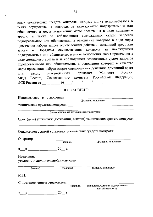 "ОБ УТВЕРЖДЕНИИ ПОРЯДКА ОСУЩЕСТВЛЕНИЯ КОНТРОЛЯ ЗА НАХОЖДЕНИЕМ ПОДОЗРЕВАЕМЫХ ИЛИ ОБВИНЯЕМЫХ В МЕСТЕ ИСПОЛНЕНИЯ МЕРЫ ПРЕСЕЧЕНИЯ В ВИДЕ ДОМАШНЕГО АРЕСТА И ЗА СОБЛЮДЕНИЕМ ВОЗЛОЖЕННЫХ СУДОМ ЗАПРЕТОВ ПОДОЗРЕВАЕМЫМИ ИЛИ ОБВИНЯЕМЫМИ, В ОТНОШЕНИИ КОТОРЫХ В КАЧЕСТВЕ МЕРЫ ПРЕСЕЧЕНИЯ ИЗБРАН ЗАПРЕТ ОПРЕДЕЛЕННЫХ ДЕЙСТВИЙ, ДОМАШНИЙ АРЕСТ ИЛИ ЗАЛОГ"