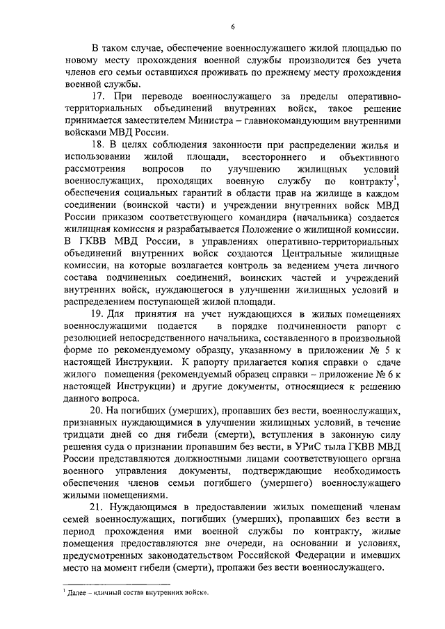 "ОБ ОРГАНИЗАЦИИ РАБОТЫ ПО ОБЕСПЕЧЕНИЮ ЖИЛЫМИ ПОМЕЩЕНИЯМИ ВО ВНУТРЕННИХ ВОЙСКАХ МВД РОССИИ"