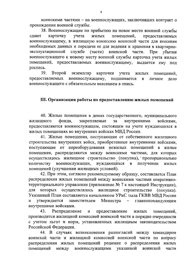 "ОБ ОРГАНИЗАЦИИ РАБОТЫ ПО ОБЕСПЕЧЕНИЮ ЖИЛЫМИ ПОМЕЩЕНИЯМИ ВО ВНУТРЕННИХ ВОЙСКАХ МВД РОССИИ"