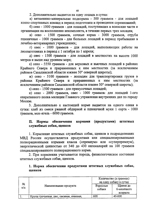 "О НЕКОТОРЫХ ВОПРОСАХ ПРОДОВОЛЬСТВЕННОГО ОБЕСПЕЧЕНИЯ И ОБЕСПЕЧЕНИЯ КОРМАМИ (ПРОДУКТАМИ) ШТАТНЫХ ЖИВОТНЫХ ПОДРАЗДЕЛЕНИЙ (ОРГАНИЗАЦИЙ, УЧРЕЖДЕНИЙ) В ОРГАНАХ ВНУТРЕННИХ ДЕЛ РОССИЙСКОЙ ФЕДЕРАЦИИ В МИРНОЕ ВРЕМЯ"