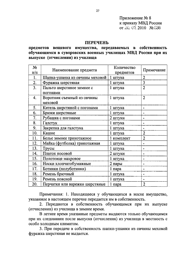ПРИКАЗ МВД РФ от 20.07.2010 N 538