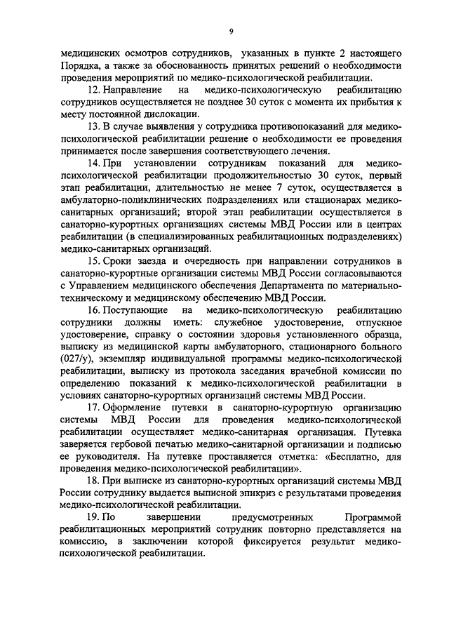 "О МЕДИКО - ПСИХОЛОГИЧЕСКОЙ РЕАБИЛИТАЦИИ СОТРУДНИКОВ ОРГАНОВ ВНУТРЕННИХ ДЕЛ РОССИЙСКОЙ ФЕДЕРАЦИИ"