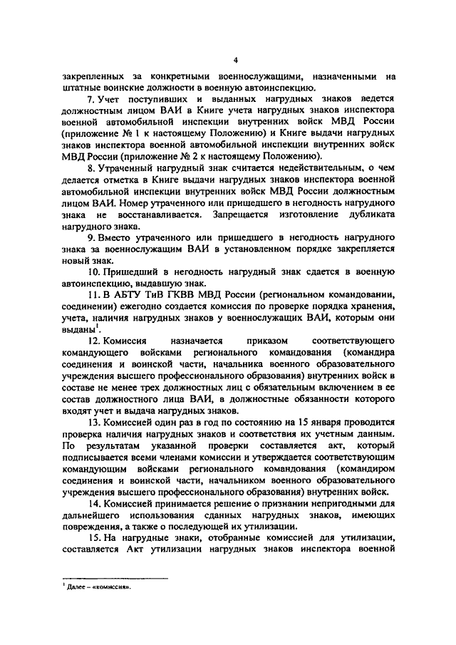 "О НАГРУДНОМ ЗНАКЕ И СЛУЖЕБНОМ УДОСТОВЕРЕНИИ ИНСПЕКТОРА ВОЕННОЙ АВТОМОБИЛЬНОЙ ИНСПЕКЦИИ ВНУТРЕННИХ ВОЙСК МВД РОССИИ"