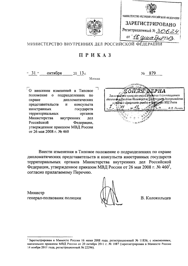 ПРИКАЗ МВД РФ от 31.10.2013 N 879