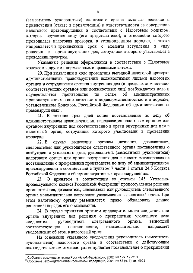 (вместе с "ИНСТРУКЦИЕЙ О ПОРЯДКЕ НАПРАВЛЕНИЯ ОРГАНАМИ ВНУТРЕННИХ ДЕЛ МАТЕРИАЛОВ В НАЛОГОВЫЕ ОРГАНЫ ПРИ ВЫЯВЛЕНИИ ОБСТОЯТЕЛЬСТВ, ТРЕБУЮЩИХ СОВЕРШЕНИЯ ДЕЙСТВИЙ, ОТНЕСЕННЫХ К ПОЛНОМОЧИЯМ НАЛОГОВЫХ ОРГАНОВ, ДЛЯ ПРИНЯТИЯ ПО НИМ РЕШЕНИЯ", "ИНСТРУКЦИЕЙ О ПОРЯДКЕ НАПРАВЛЕНИЯ МАТЕРИАЛОВ НАЛОГОВЫМИ ОРГАНАМИ В ОРГАНЫ ВНУТРЕННИХ ДЕЛ ПРИ ВЫЯВЛЕНИИ ОБСТОЯТЕЛЬСТВ, ПОЗВОЛЯЮЩИХ ПРЕДПОЛАГАТЬ СОВЕРШЕНИЕ НАРУШЕНИЯ ЗАКОНОДАТЕЛЬСТВА О НАЛОГАХ И СБОРАХ, СОДЕРЖАЩЕГО ПРИЗНАКИ ПРЕСТУПЛЕНИЯ") (Зарегистрировано в Минюсте РФ 01.09.2009 N 14675)
